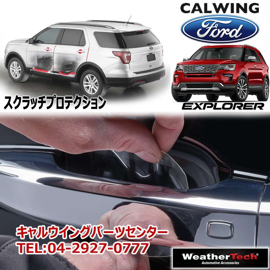 日常使用で最も傷つきやすいとも言えるドアハンドルの内側、ドアエッジ、ドアシル部分に貼り付けて使用する特殊な自己修復テクノロジーを備えたスクラッチプロテクションシートのご紹介です。エクスプローラーのボディを正確に計測してカットされたポリウレタンフィルムから作られており、車両にパーフェクトにフィットします。