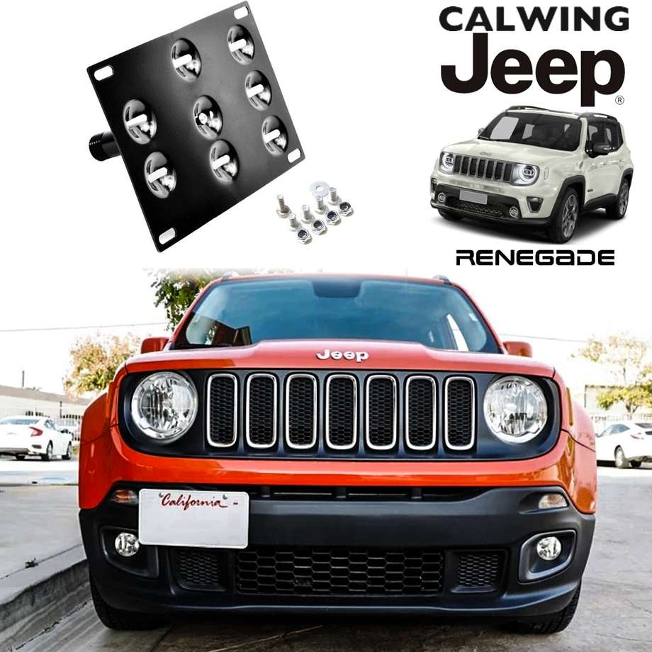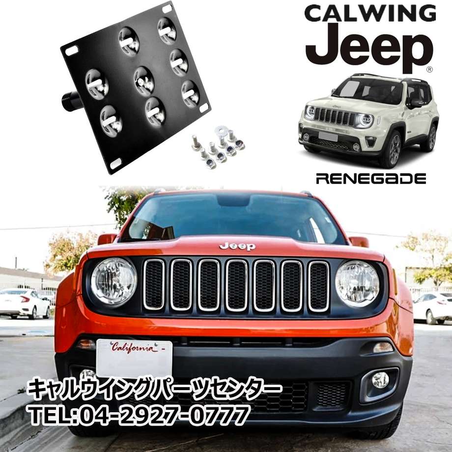 レネゲードのフロントライセンスプレートを移設することが可能となるライセンスプレートブラケットです。ロアグリルにオフロードライトを装着する場合やフロントエアインテークへのエアー流入を確保する際などオフロードカスタムにお勧めです。