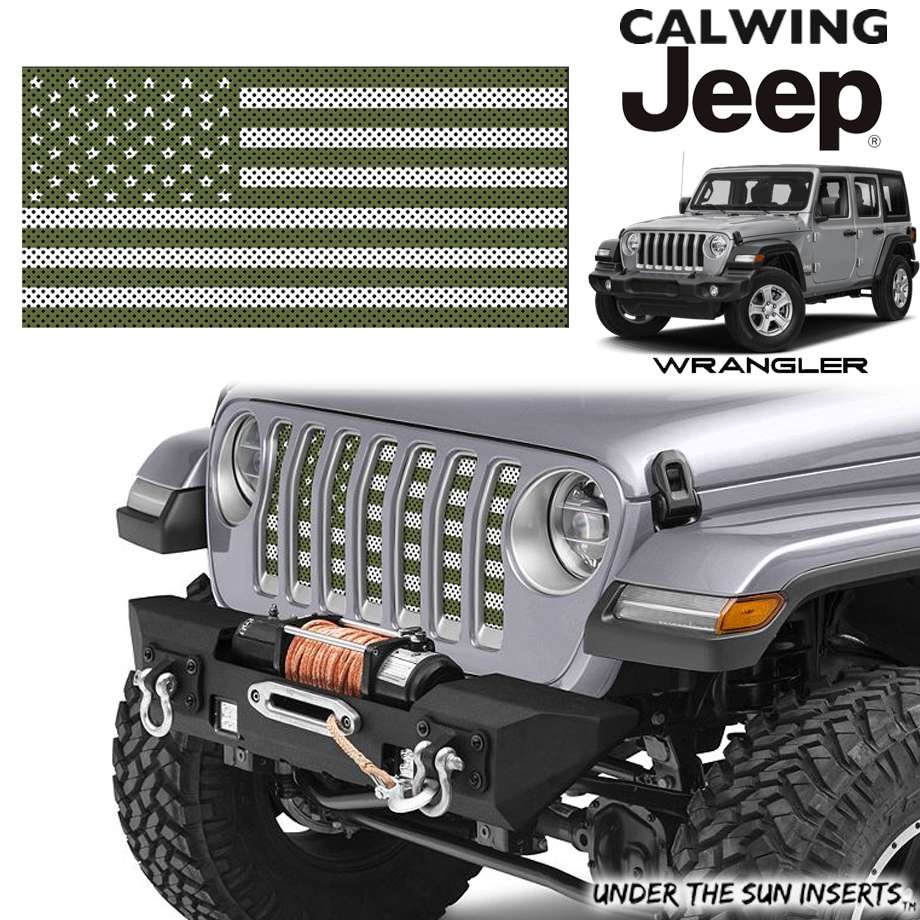18y- ジープ ラングラー JL | グリルインサート OLD GLORY オリーブ ホワイトスター /ストライプ アンダーザサンインサート