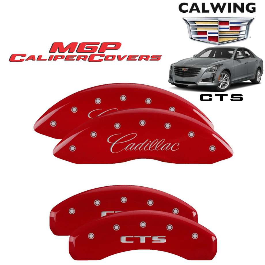 14-19y CTS | ブレーキキャリパーカバー レッド フロント:キャデラックロゴ リア:CTSロゴ 4PCS MGP