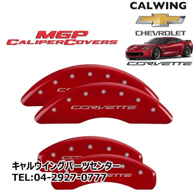 14y- コルベット C7 J55ブレーキ車 | ブレーキキャリパーカバー レッド コルベットロゴ 4PCS MGP
