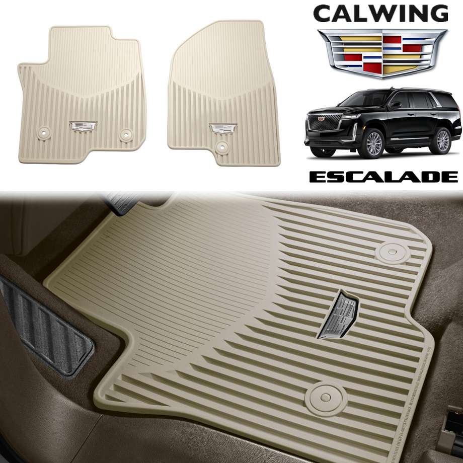 21y- エスカレード/エスカレードESV | フロアマット フロント ベージュ オールウェザー キャデラックロゴ 2PC GM純正