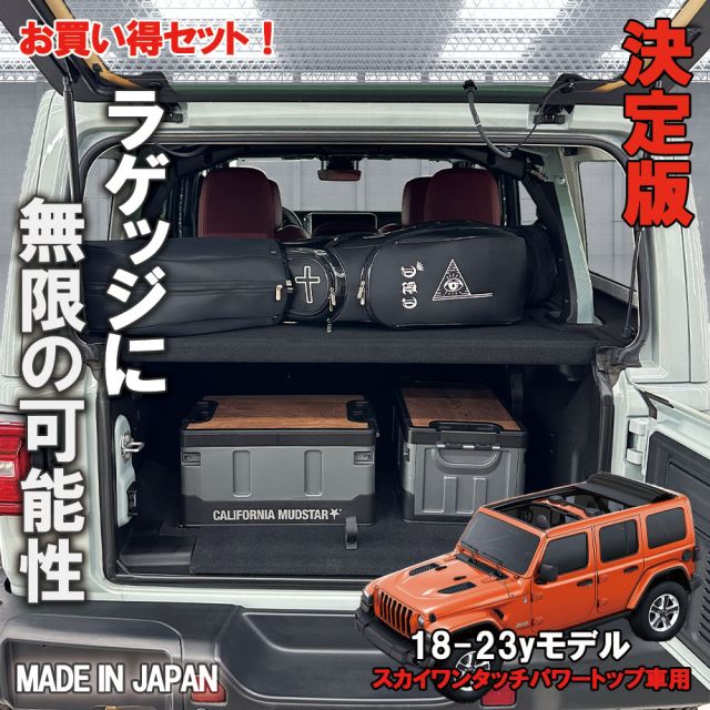【お買い得セット】18-23y ジープ ラングラー JL アンリミテッド スカイワンタッチトップ車専用 ラゲッジボード ラゲッジプレートセット 内装アクセサリー 車中泊 キャンプ カスタム パーツ ブラック 日本製 ラゲッジラック