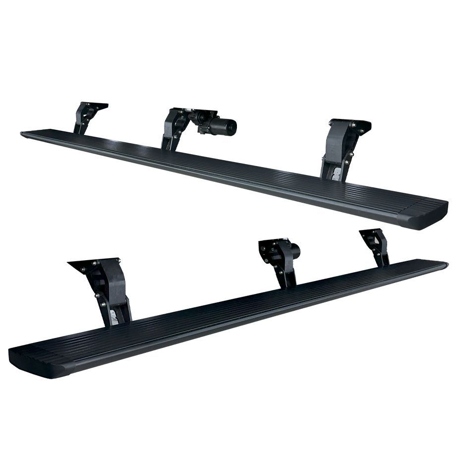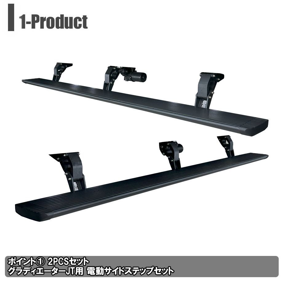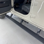 カリフォルニアマッドスターからリリースされたグラディエーターJT用電動サイドステップ(パワーランニングボード)のご紹介です。 リフトアップした車両はサイドステップがあると乗り降りが楽になりますが、純正は形状がスタイリッシュとは言えず、カスタムしたくなるポイントです。 こちらはドアの開閉に合わせてステップが昇降する電動サイドステップとなっており、使用しない時はボディに沿って格納される為、非常にスタイリッシュとなっています。 ドアを開くとステップが降りてくるので女性やお子様でも、乗り降りがしやすくなります。リフトアップした車両はもちろん、純正車高のグラディエーターにもオススメです。 本体はブラックパウダーコートが施されており、耐久性が高く長く使って頂ける製品です。 |