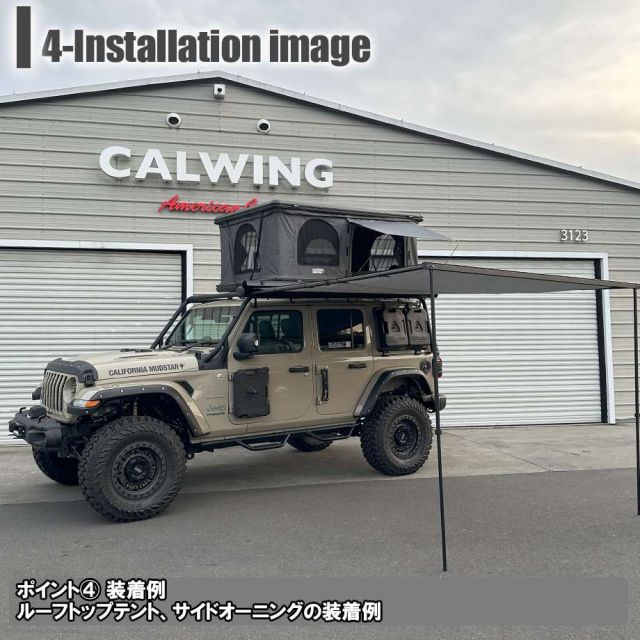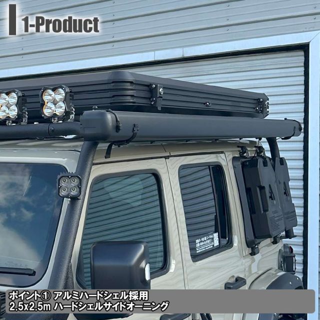ルーフトップテントのサイドオーニングを同時に装着することで、流行りのアウトドアスタイルを実現‼ | ||||||||||||||||||||