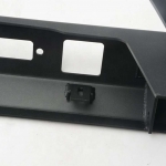 グリルガードバーを装備して、より一層無骨なイメージを醸し出し、過酷なオフロードセクションに挑む為にバンパー両端を潔く無くしたショートタイプとなっており、より大きなオフロードタイヤの装着を可能とし、アプローチアングルも稼ぐ事が可能です。LEDキューブフォグライトを埋め込む2箇所のマント、Dリングなどを装着可能なフックマウントを2箇所装備しています。